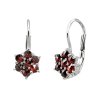 Strieborné náušnice v tvare kvetiny sú krásne zdobené granátom. Tento prírodný kameň vyniká svojou sýto červenou farbou a v kombinácii so striebrom tvorí pekný doplnok, ktorý zaujme na prvý pohľad.