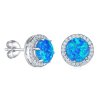 Strieborné náušnice sú dekorované modrým syntetickým opálom.
