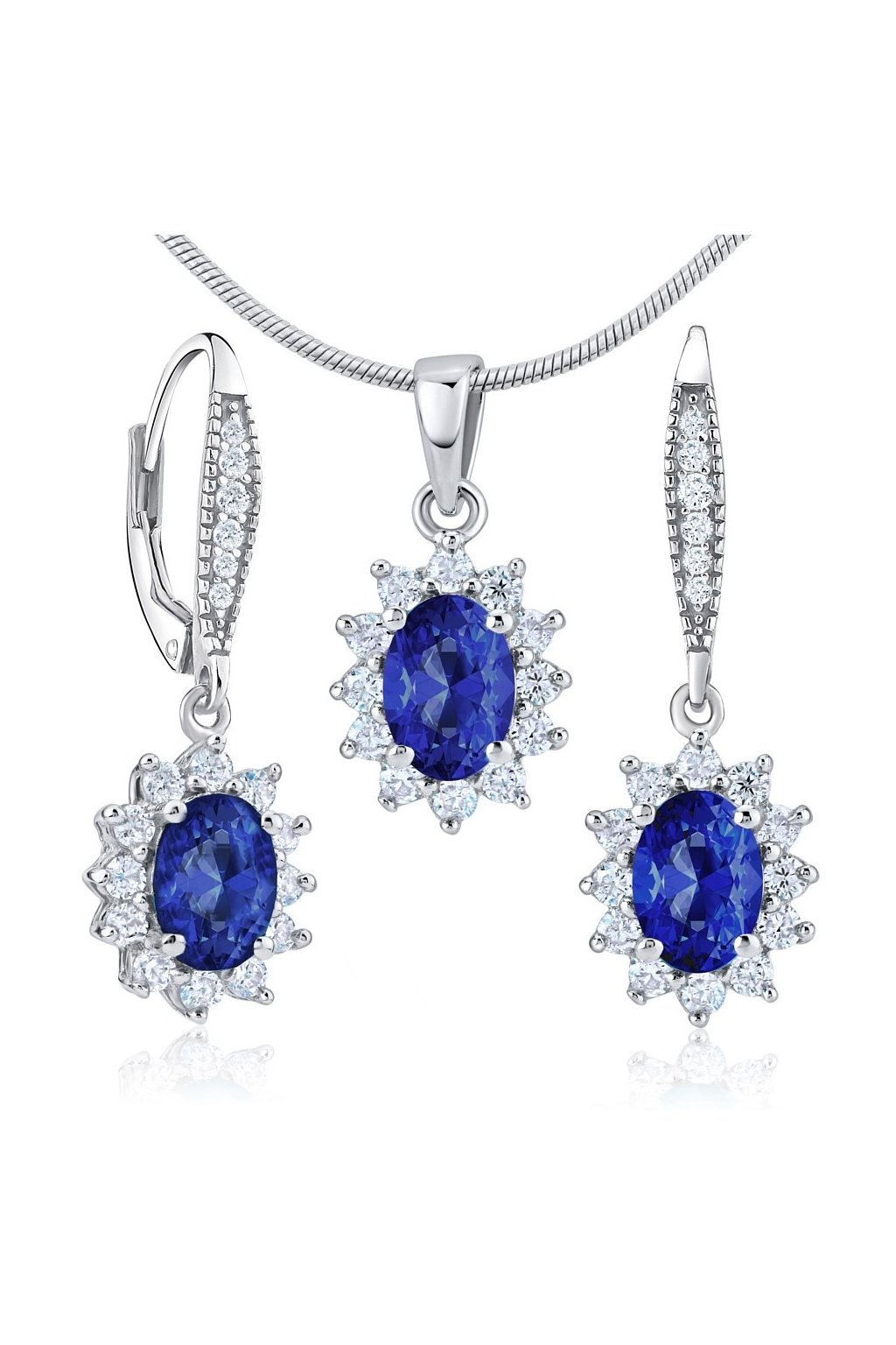 Darčeková súprava šperkov - náušnice a prívesok so syntetickým zafírom.