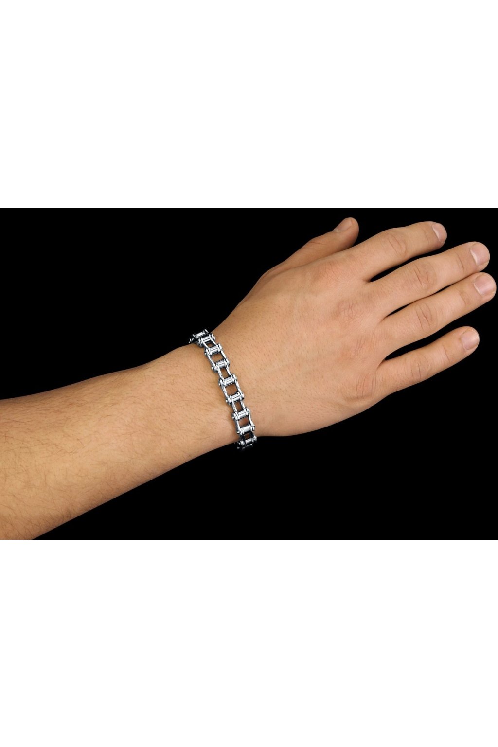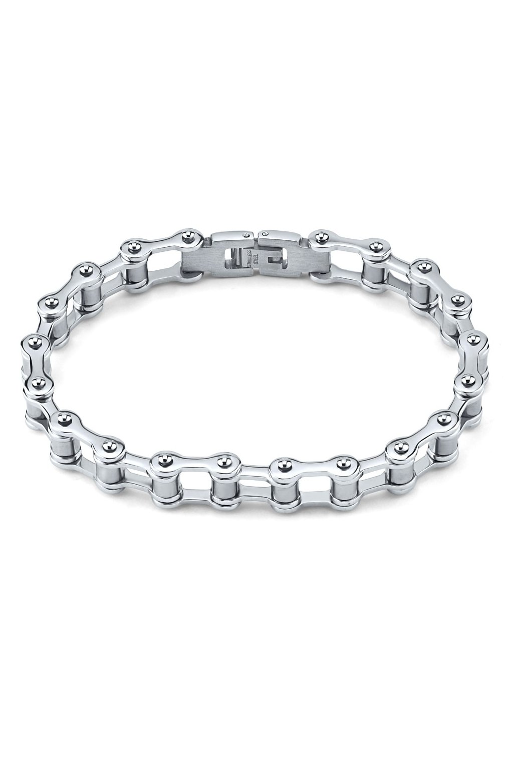 Oceľový náramok v lesklom prevedení so zapínaním na karabínku. Tento šperk s dômyselným navrhnutím pôsobí štýlovo a osloví každého muža, ktorý má rád netradičné doplnky.