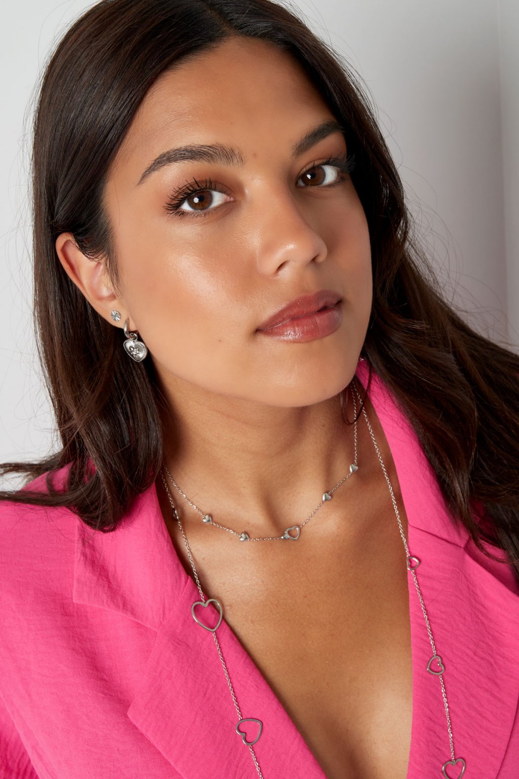 Náhrdelník z chirurgickej ocele zdobia malé srdiečka, jedno veľké srdiečko. Náhrdelník pôsobí romanticky a nežne.