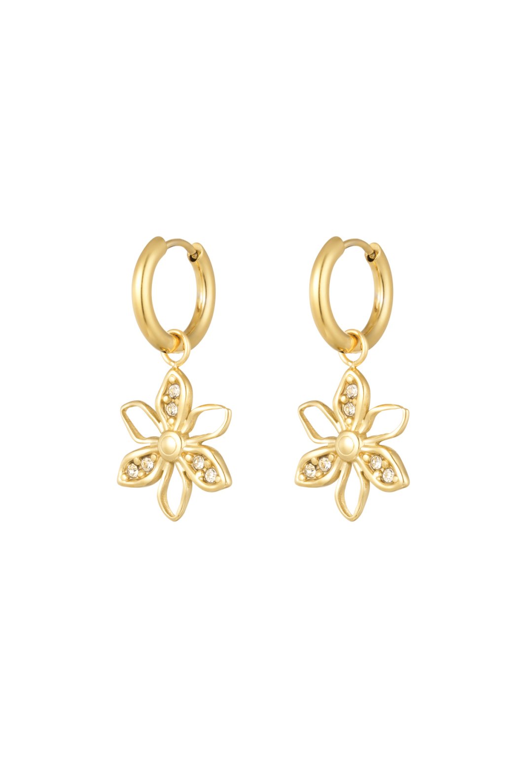 Decentné pozlátené náušnice z chirurgickej ocele. Náušnice zdobí kvetina, výnimočnosť spočíva v lupienkoch, kde môžme zahliadnuť zirkón.