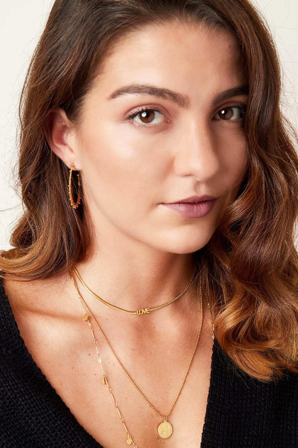 Ikonický hadíkový náhrdelník v zlatej farbe. Ozdobou náhrdelníka je nápis love.