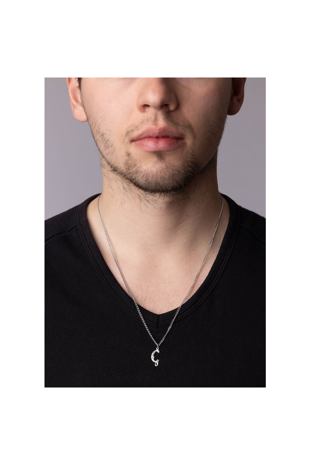 Strieborný prívesok má tvar písmena G, je dekorovaný moderným ozdobným rytím.