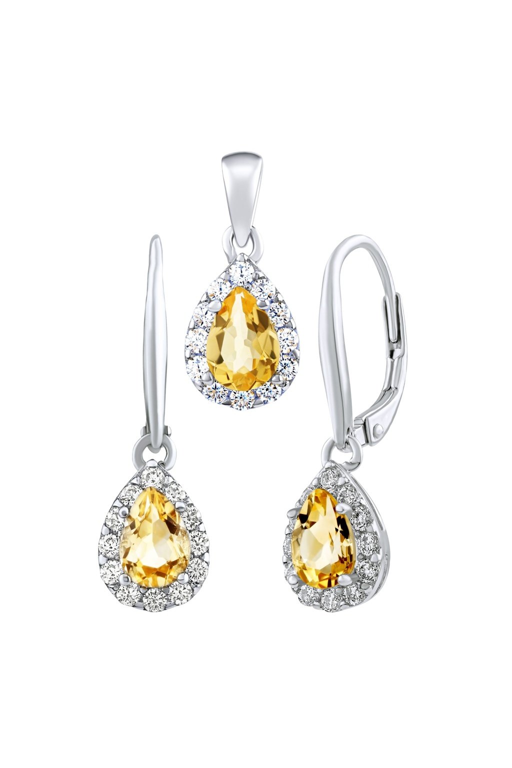 Sada strieborných šperkov Eureka s citrínom - náušnice a prívesok