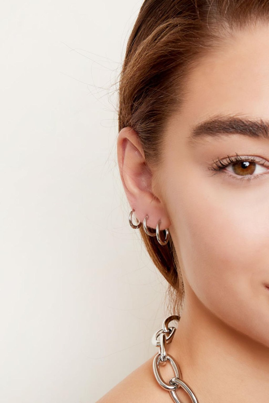 Perfektná súprava troch základných náušníc v rôznych veľkostiach. Tieto kruhové náušnice možno ľahko kombinovať medzi sebou alebo s inými striebornými náušnicami.
