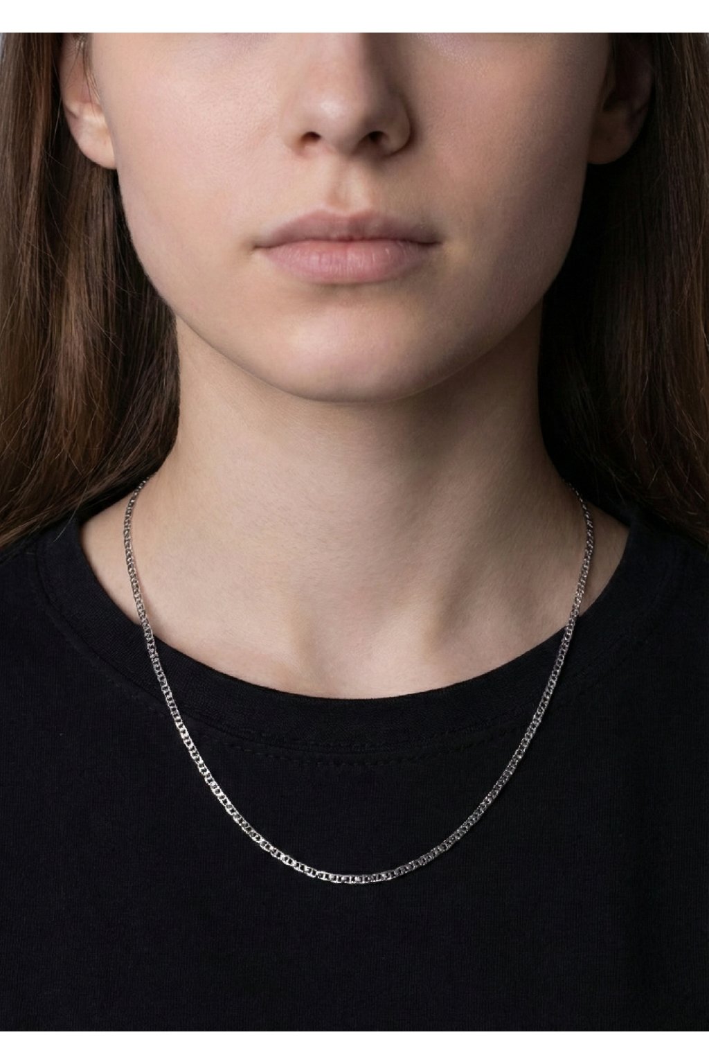 Strieborná reťaz typu Marine v lesklom prevedení je moderným doplnkom pre ľudí, ktorí dávajú prednosť výrazným šperkom. Retiazka pôsobí veľmi štýlovo. Výrazný vzor a oválne krúžky pripomínajú námornícku reťaz.
