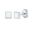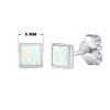 Strieborné náušnice kôstky v tvare štvorca sú dekorované bielym syntetickým opálom.