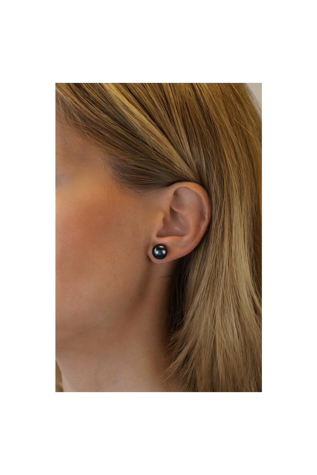 Strieborné náušnice napichovacie sú zdobené čiernou perlou Swarovski ® Crystals.