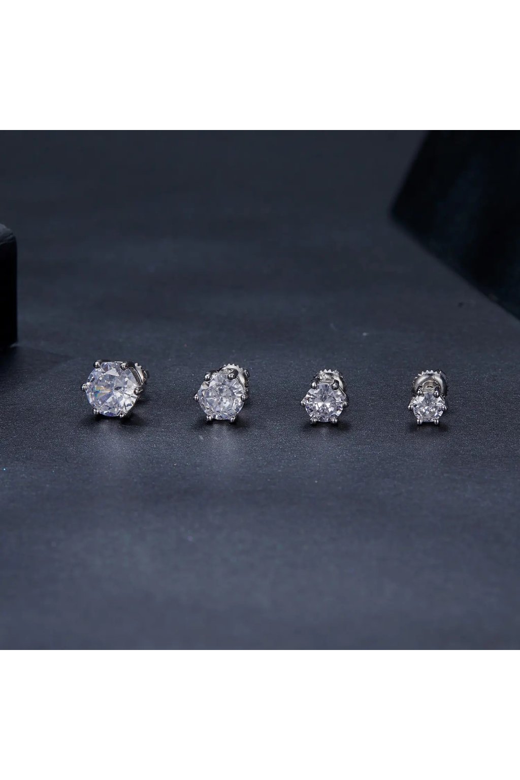 Malé puzetové náušničky vyrobené zo striebra. Obsahujú zirkón v čírej farbe.
