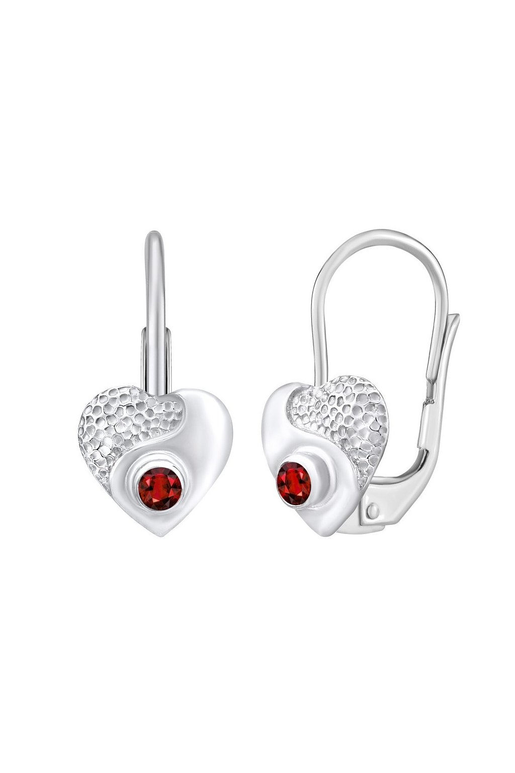 Strieborné náušnice srdce s prírodným červeným topásom Swarovski ® Gemstones