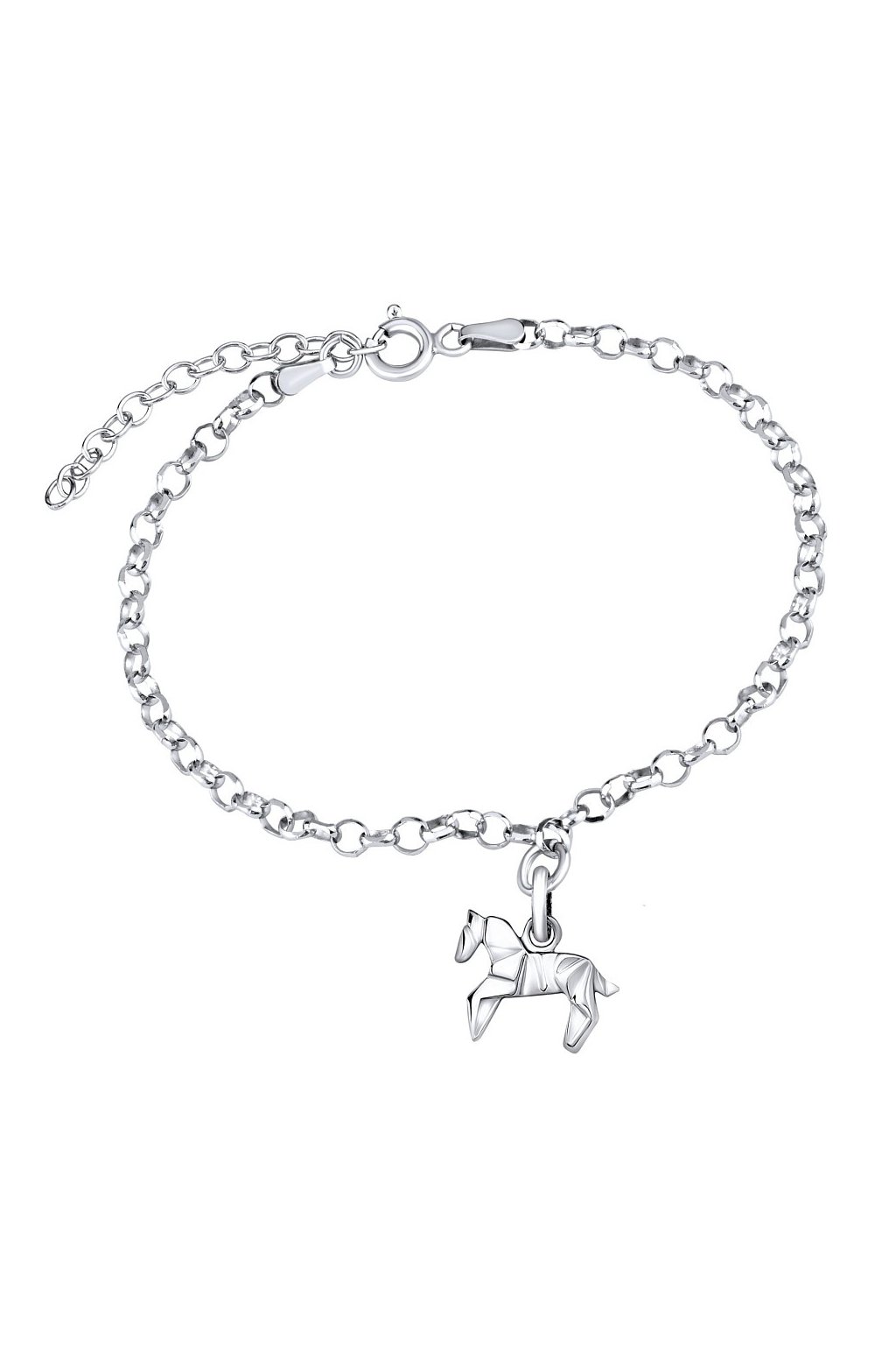Strieborná retiazka na ruku Kôň Origami s predĺžením.