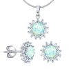 Strieborná súprava opálových šperkov je decentne skrášlená drobnými čírymi zirkónmi a stredovým syntetickým svetlým opálom.