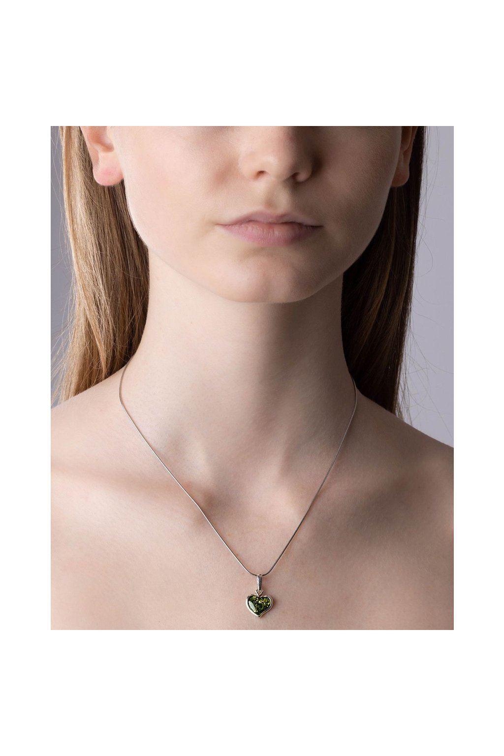 Strieborný prívesok SRDCE s tmavo zeleným prírodným jantárom