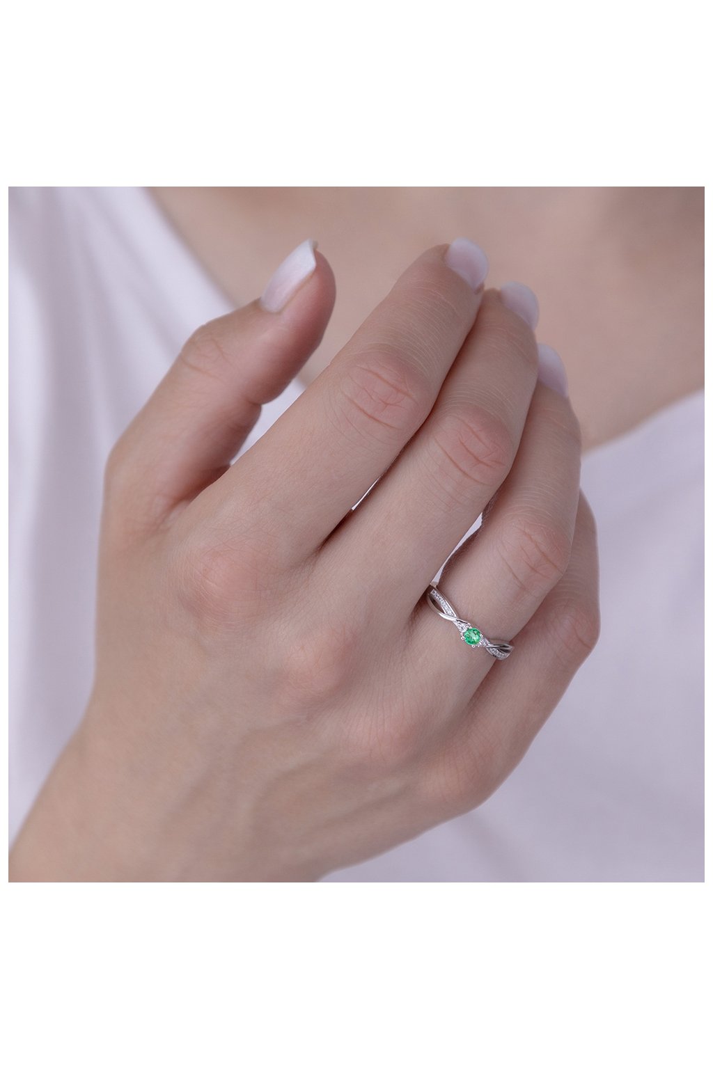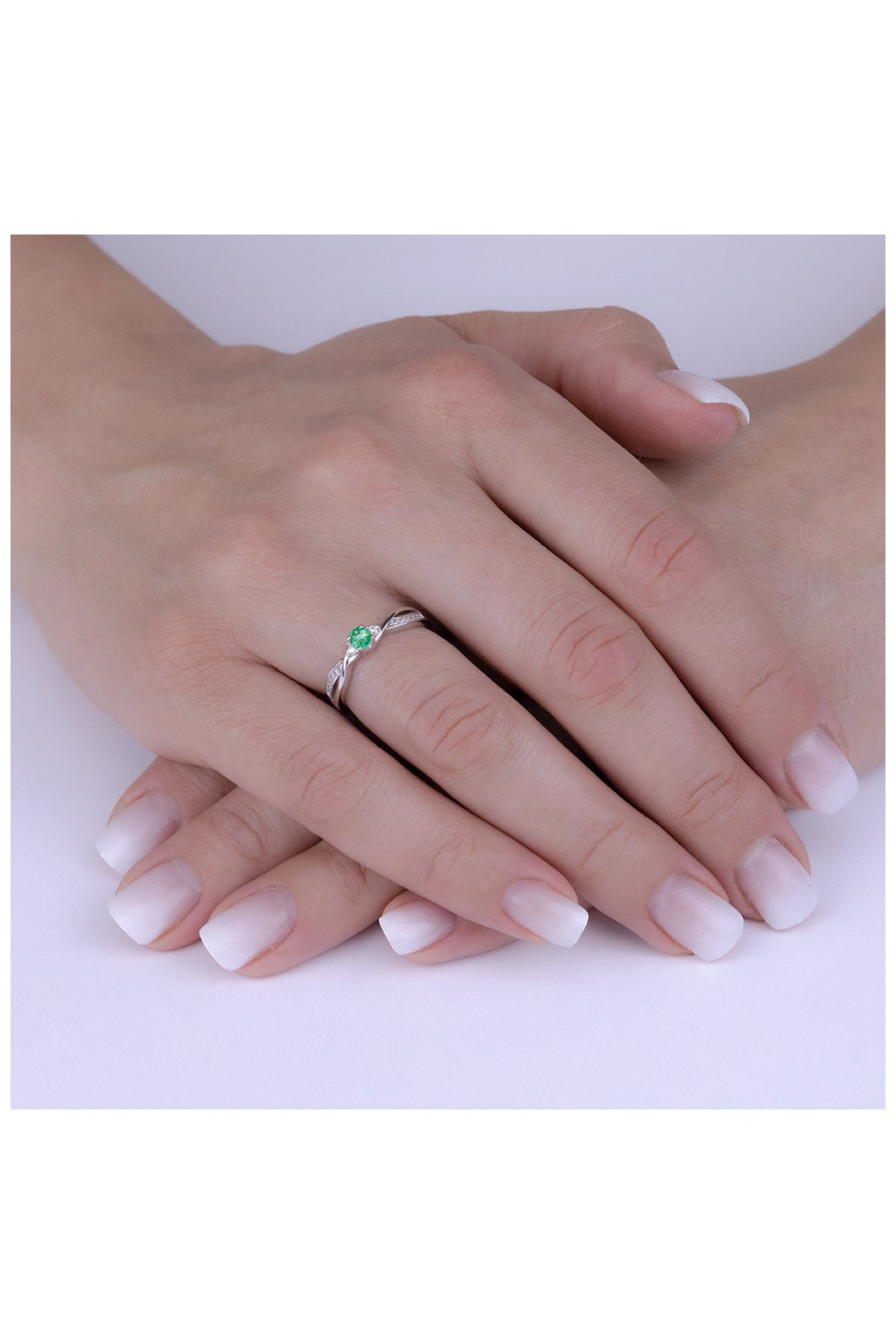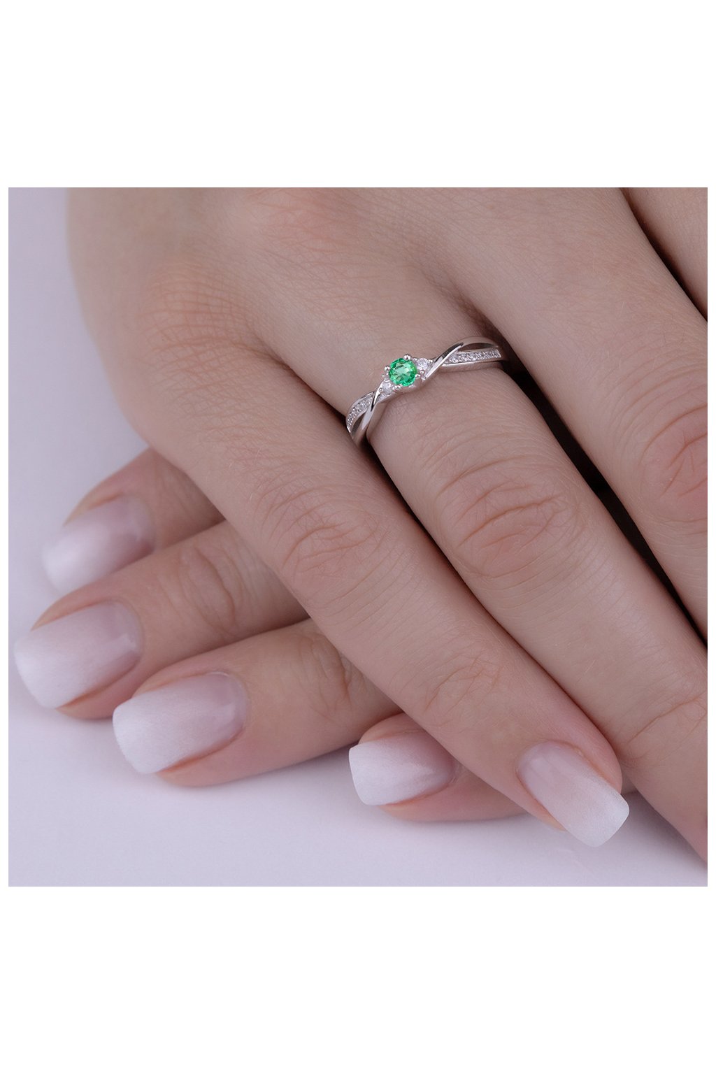 Rhodiovaný povrch – vysoký lesk, vzhľad bieleho zlata, šperk je odolný voči oxidácii (nečierna) a je hypoalergénny (môžu ho nosiť aj ľudia s alergiou na striebro) Šírka prsteňa: 3,5 mm. Kamene: pravý prírodný Smaragd o veľkosti 3 mm a číre zirkóny SILVEGO® Brilliance Zirconia. Súčasťou šperku je certifikát pravosti kameňa.