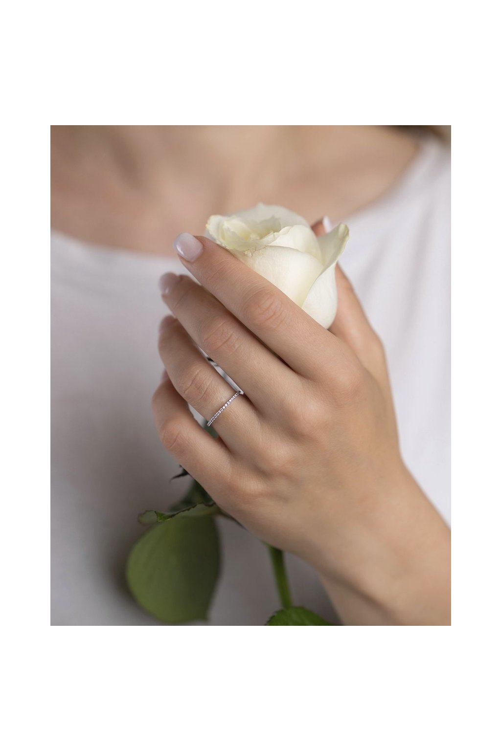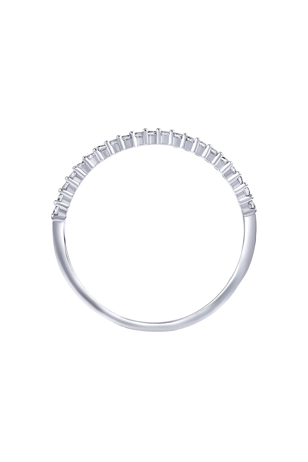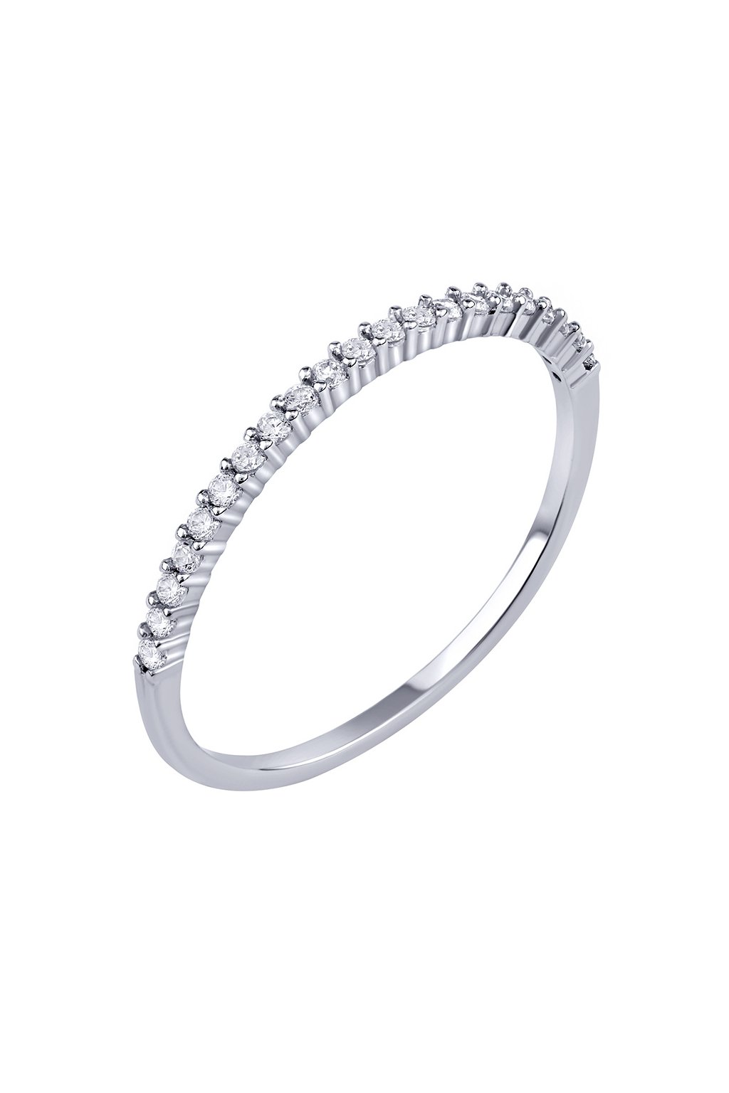 Rhodiovaný povrch – vysoký lesk, vzhľad bieleho zlata, šperk je odolný voči oxidácii (nečierna) a je hypoalergénny (môžu ho nosiť aj ľudia s alergiou na striebro) Šírka prsteňa: 1,25 mm. Zirkóny: číre SILVEGO® Brilliance Zirconia.