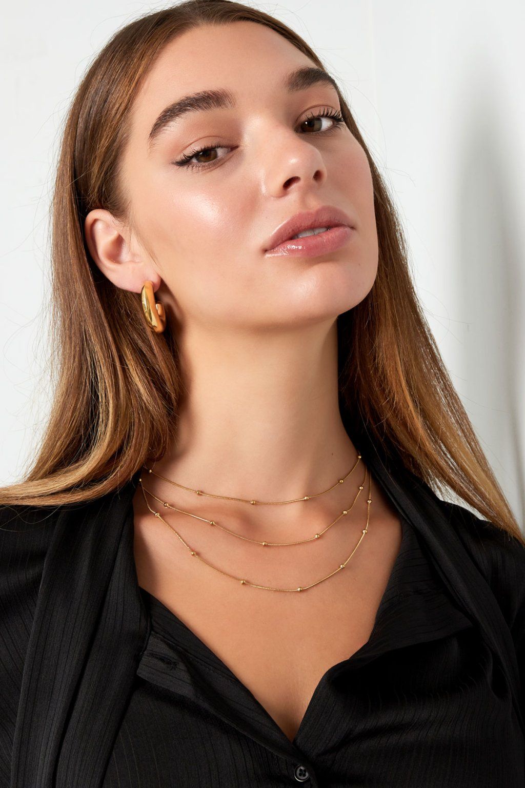 Pozlátený náhrdelník sa skladá z troch jemných retiazok, ktoré sú zdobené malými guľôčkami. Tento originály náhrdelník Vás očari na prvý pohľad.