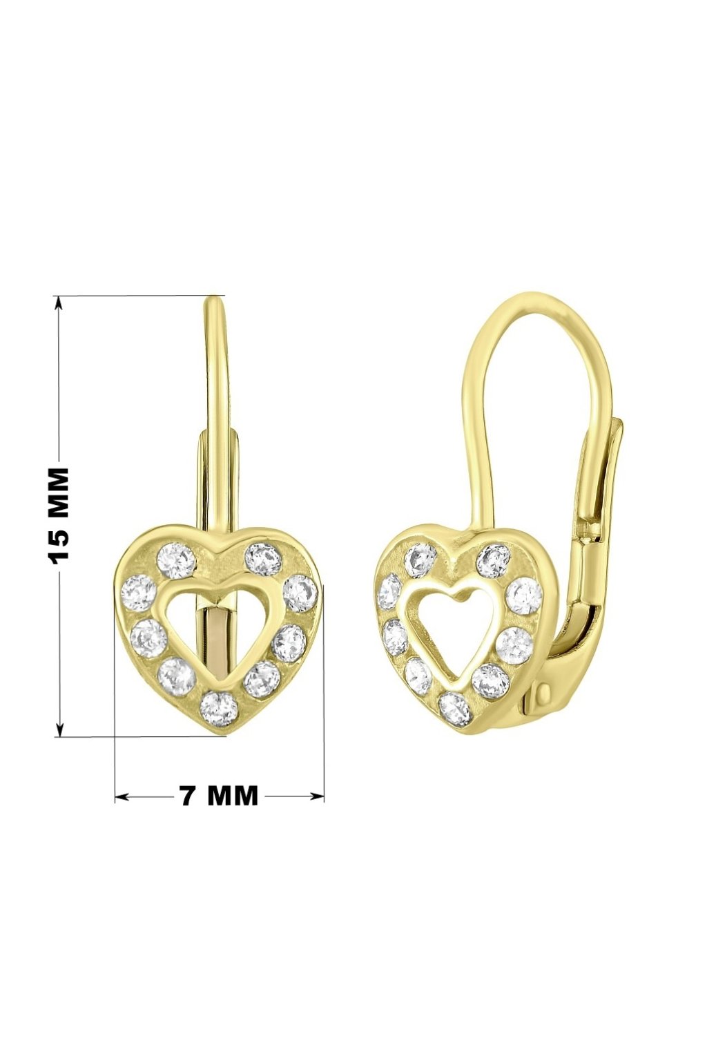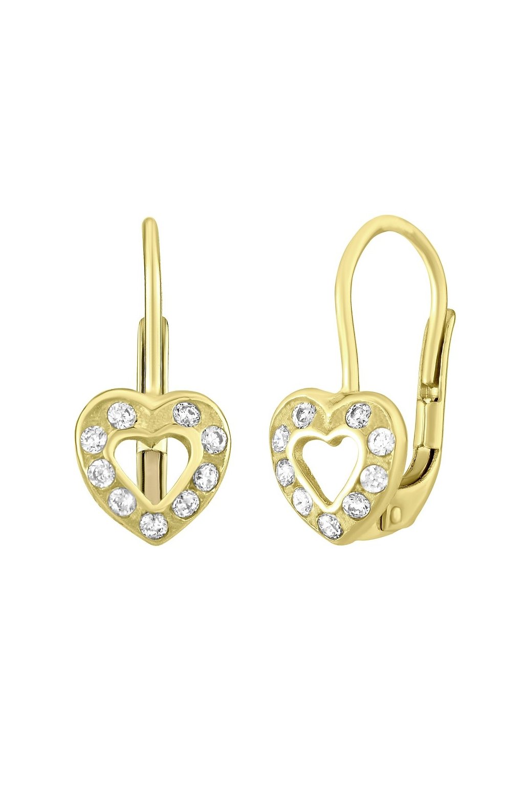 Zlaté náušnice v tvare srdca s drobnými zirkónmi Swarovski®.