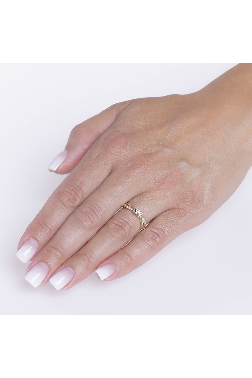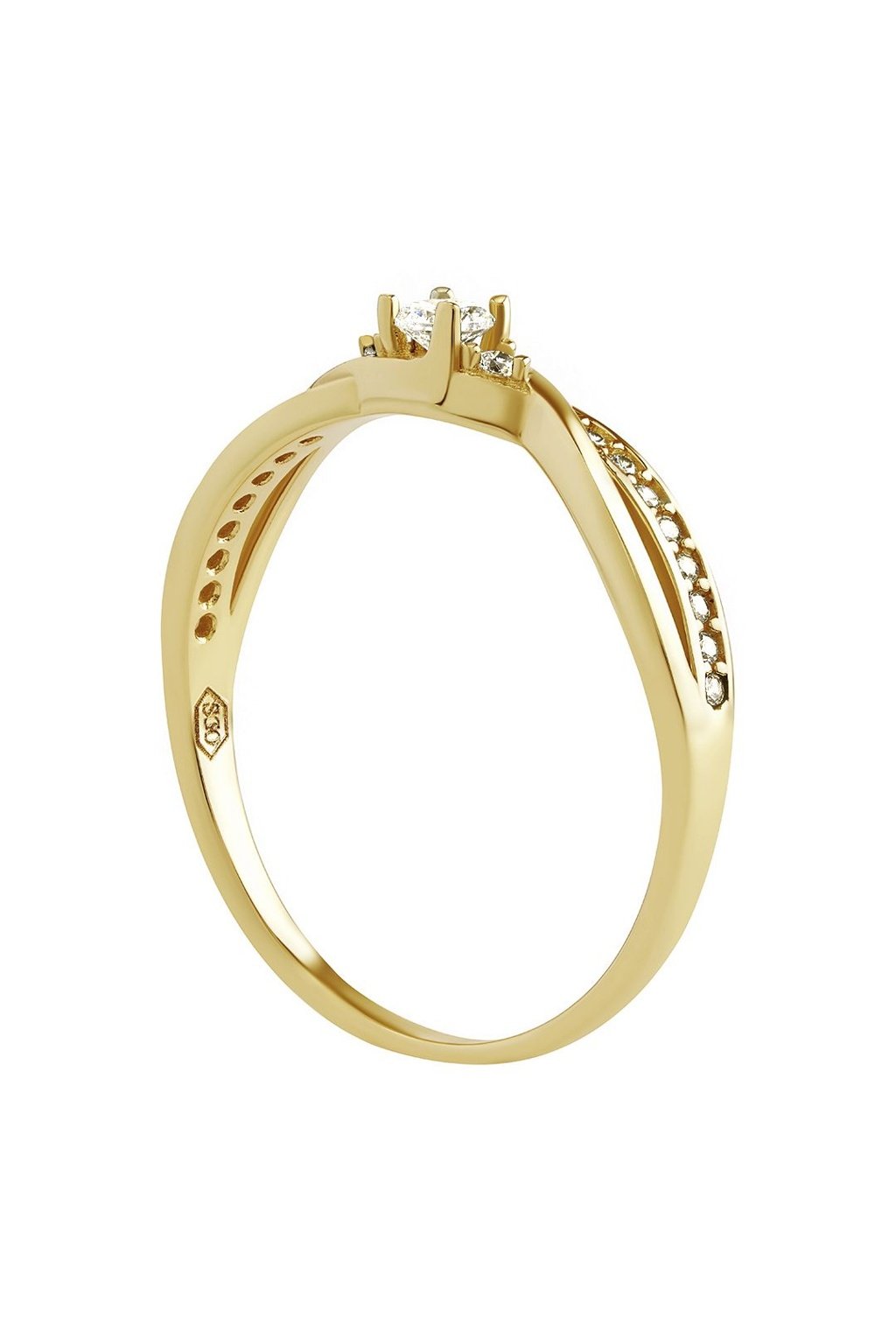Zásnubný prsteň Ellen zo žltého zlata s lesklou povrchovou úpravou je nádherne zdobený čírym a výrazne trblietavým zirkónom Brilliance Zirconia.